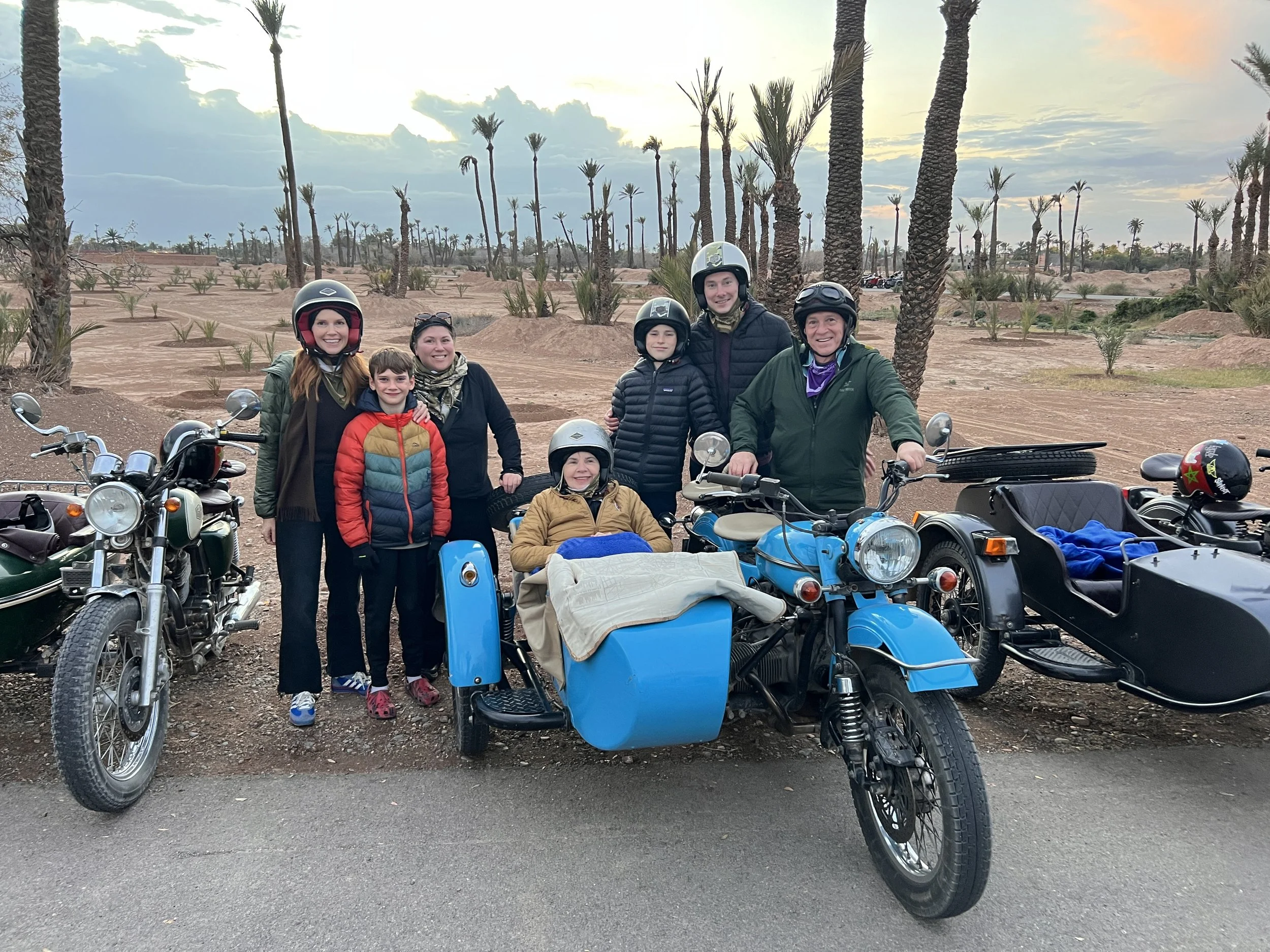 Our expert guide, Hassan, led us through the labyrinthine of souks and artisan workshops, ensuring we found the finest craftsmen. I even discovered the perfect light fixture for our home, with the artisans offering customization and reliable shipping to the US. It is important to make sure you are buying from credible shops to ensure you receive the products you purchased! A few of our favorite moments: A sunset sidecar tour through the Medina, complete with rooftop drinks as the sun set behind the illuminated mosque Family spa day with a traditional Hammam experience A 70th birthday celebration for my mom in the Agafay Desert, featuring a traditional Gnawa band, delicious dinner, and dancing A hike through the High Atlas Mountains, visiting Berber villages and enjoying an authentic meal prepared with a local family .